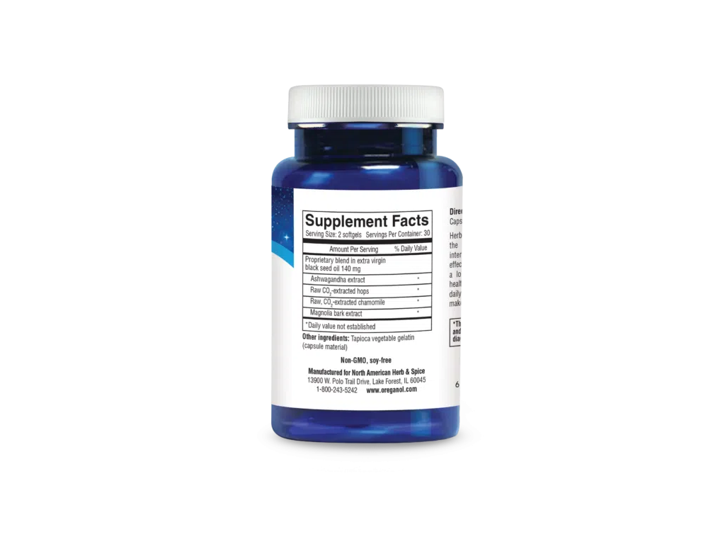 Obsahuje účinné rostlinné extrakty jako ashwagandha, chmel, heřmánek, magnólie a černý kmín. Tyto bylinky jsou tradičně využívány pro podporu spánku, snížení stresu a celkové zklidnění organismu.