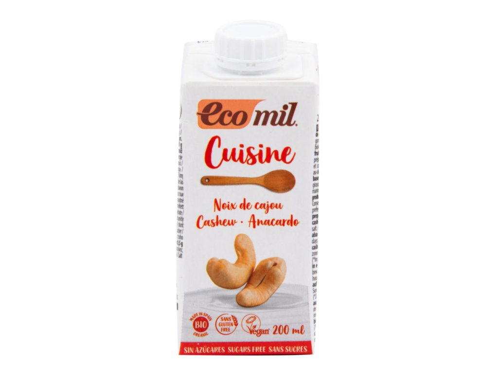 Bio kešu je alternativou kravské a sójové smetany. Vhodná do omáček, polévek, těstovin či zeleniny, do moučníků nebo čaje. Neobsahuje laktózu, lepek, cholesterol a sóju.Společnost EcoMil vznikla v roce 1991. Jejím cílem na začátku bylo inovovat recept na tradiční nápoj ve Španělsku, mandlové mléko. Jedná se o přední značku v Evropě v oblasti výroby rostlinných nápojů. Při výrobě jsou používány ty nejkvalitnější ořechy, které jsou následně za studena lisovány, čímž se odtuční a vznikne jemný prášek. Ten se dle potřeby smíchává s vodou. V roce 2014 byl EcoMil registrován na VeganSociety.com a získal označení Vegan, což dokládá malá slunečnice na obalu. Všechny jejich výrobky jsou vyrobeny ze surovin ekologického zemědělství, bez chemických hnojiv, pesticidů nebo GMO. Navíc jsou všechny obaly recyklovatelné a získávané z udržovaných a opečovávaných lesů. Složení: Výživové údaje na 100 ml:Energetická hodnota 389 kJ / 93 kcal Tuky: 8,3 g z toho nasycené mastné kyseliny: 1,1 g Sacharidy: 2,8 g z toho cukry: 0,5 g Bílkoviny: 1,3 g Sůl: 0,3 g