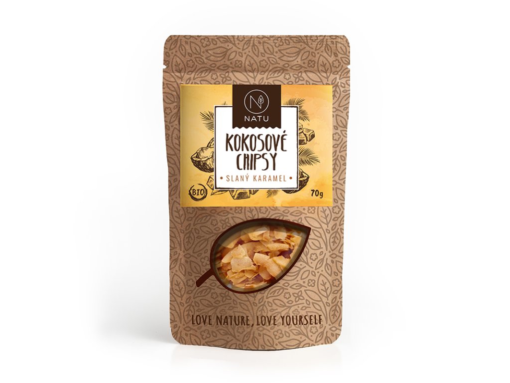 Bio kokosové chipsy slaný karamel 70g, Natu