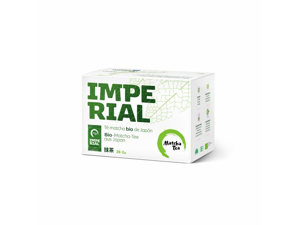 Bio Matcha Tea Imperial, je mezičlánkem mezi Harmony a Premium. Má jemnější chuť a bohatší pěnu než Harmony, ale současně výraznější chuť než Premium. Zvládne dochucování, ale můžete ho pít i čistý. Balení obsahuje 25 kusů 2 g sáčků, které udržují čaj neustále čerstvý a jednotlivé porce není třeba odměřovat.Certifikace: Bio Matcha Tea Imperial je stejně jako všechny naše ostatní čaje certifikován známkou Bio. Tuto známku Matcha Tea úspěšně obhajuje každý rok už od roku 2013. Mezi certifikáty společnosti Matcha Tea patří také Certifikát o zdravotní nezávadnosti produktu vydaný Státním zdravotním ústavem. Podobně vysoké nároky klade Matcha Tea i na své japonské dodavatele, kteří disponují i takovými certifikáty, jako jsou například: JAS, OCIA, USDA, Bureau Veritas, ISO 9001, Kosheer a další. Příprava: Do láhve nebo šejkru vysypte obsah 2g sáčku, přilijte studenou nebo horkou vodu do 70 °C a pořádně protřepejte. Doporučená denní dávka u dospělého člověka je 4-6 gramů. Těhotné, kojící a děti cca 2 gramy denně.