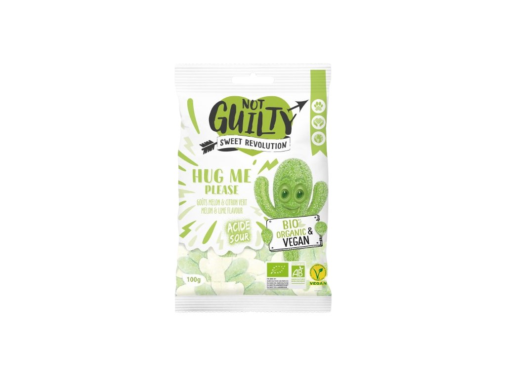 Osvěžte si den sladko-kyselým objetím! Not Guilty Hug Me Please jsou měkké ovocné bonbóny ve tvaru kaktusů, které spojují šťavnatou melounovou chuť s pikantní limetkou. Vyrobené z bio surovin a 100% rostlinné, takže si je můžete dopřát kdykoli bez výčitek.