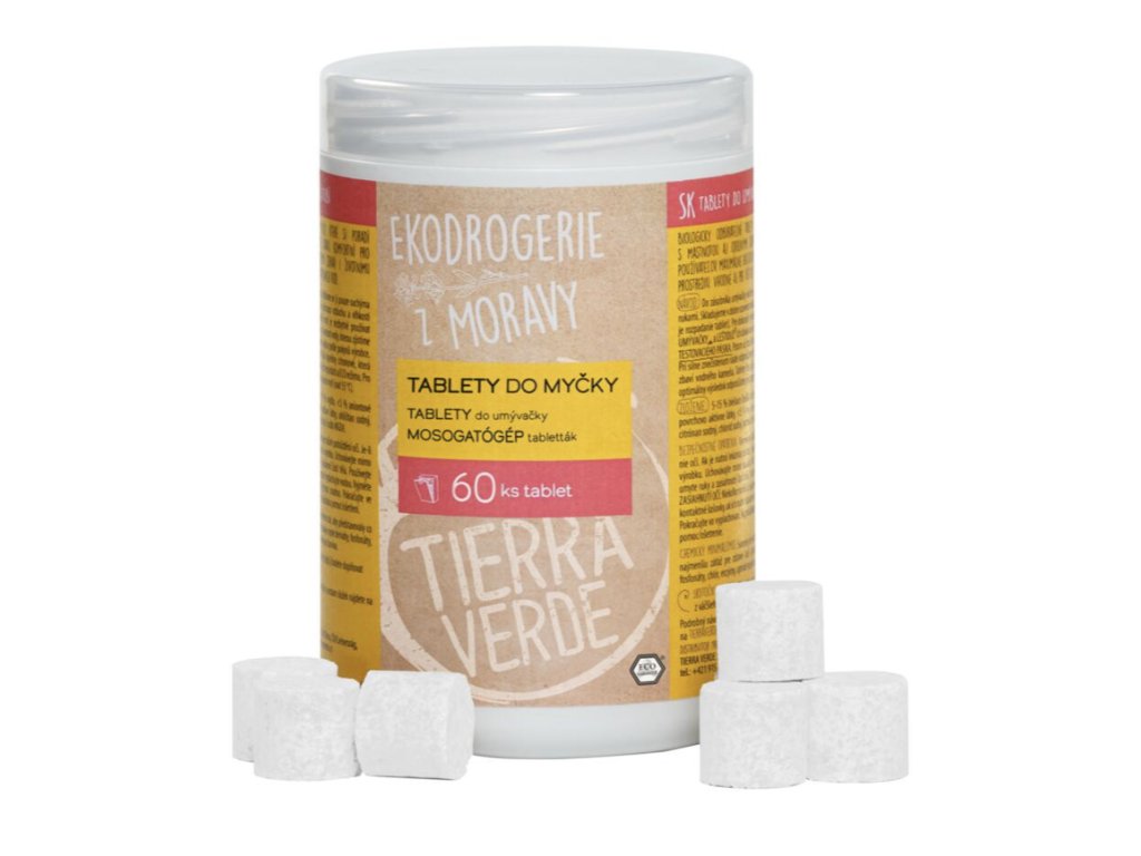Biologicky plně rozložitelné tablety do myčky vytvořené z pouhých šesti surovin rostlinného a minerálního původu. Prostředek do myčky už nemusíte odměřovat. Jen vložíte tabletu a počkáte si na čisté nádobí. Tablety do myčky si poradí s mastnotou i odolnými skvrnami. Neobsahují žádné syntetické vůně, které by ulpívaly na nádobí. Díky šetrnému složení vyhovují i čistírnám odpadních vod. Tablety nejsou jednotlivě balené, takže nevzniká zbytečný odpad. Tyto tablety splňují náročná kritéria předního evropského certifikátu Ecogarantie.